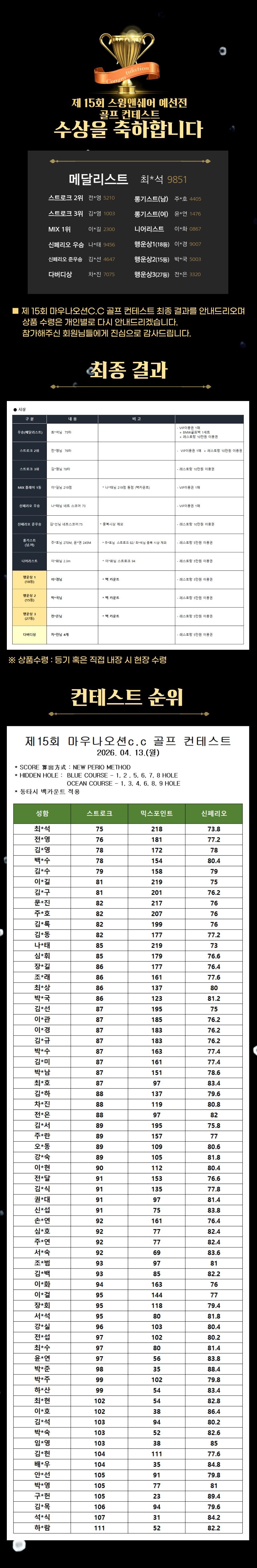 제목■ 제15회 마우나오션C.C '스윙 앤 쉐어'골프 컨테스트 대회 결과 공지 2026-04-14